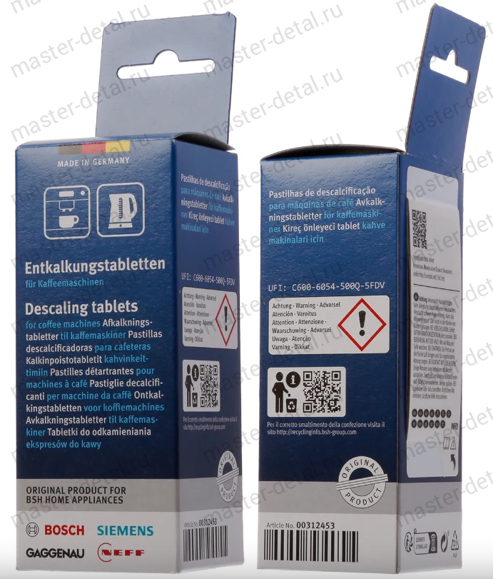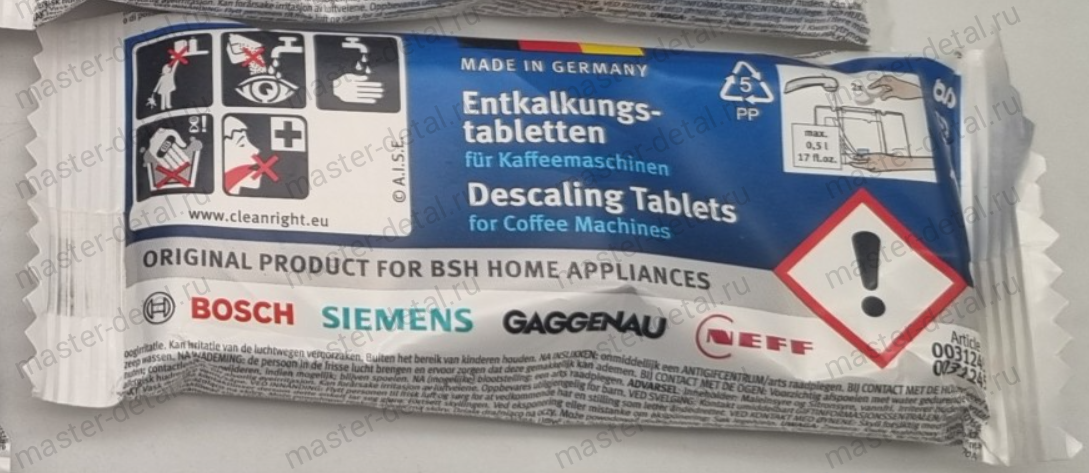 Таблетки 2 шт по 18 грамм BSH Hausgeräte GmbH made in Germany для очистки от накипи (антинакипин) для кофемашин и чайников Siemens/Сименс, CLEA897