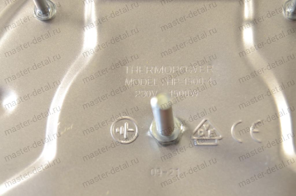Диаметр чугунной части - 180мм (+/- 5 мм) Диаметр чугунной части с фаской от края до края - 185мм (+/- 5 мм) Диаметр по ободу кольца из нержавейки - 195мм (+/- 5 мм) Толщина чугунной части - 22мм. 4 клеммы питания под номерами: 1-2-4-3 Под переключатель режимов на 6 положений ("0" - нулевое + 6 рабочих положений). |