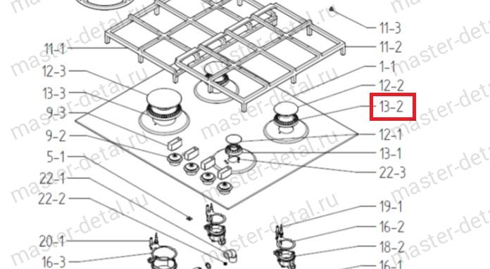 Рассекатель пламени СРЕДНЕЙ конфорки газовой варочной поверхности и плиты Gorenje, Mora, Asko, Hisense, Korting, Bosch, Siemens, NEFF и др