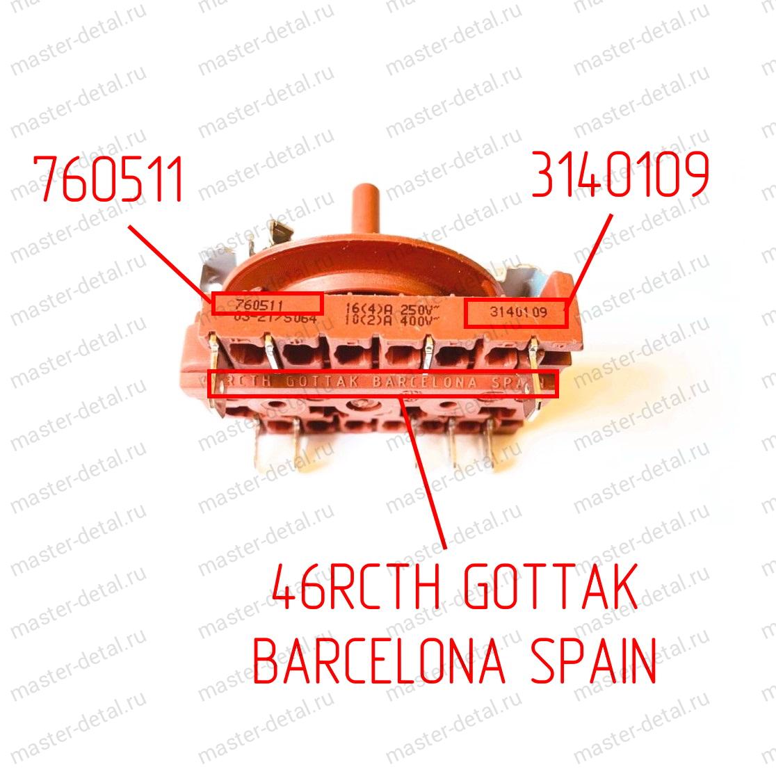 Переключатель 760511 3140109 BARCELONA SPAIN 46RCTH GOTTAK духовки Teka/Тека, TUMB663