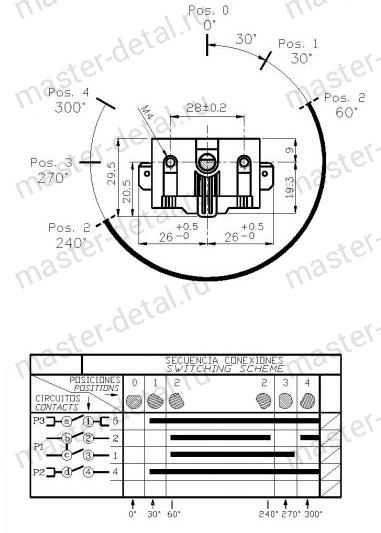 Переключатель духовки 820405 7LA-Gottak BARCELONA SPAIN режимов работы газовых и электроплит Hansa, Amica, Kaizer без режима "Гриль" (с этим режимом смотри переключатель 820510).