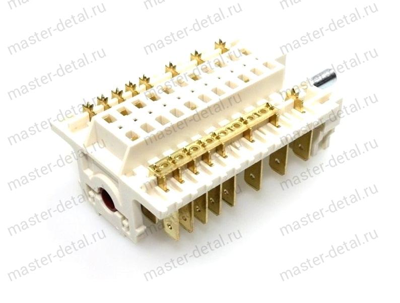 Ток: 16A. Крепление: винты 2 шт.; Шток: длина 23мм, 6х4,6мм, стальной вал. Кол-во положений (кол-во переключаемых режимов): 7 позиций (6 шт. рабочих и "0" - нулевое) Ниже представлено фото ("белый" и "красный") абсолютно аналогичных взаимозаменяемых между собой переключателей с абсолютно одинаковыми режимами работы духовки. Нумерация контактов одного и другого вида представлена (см. фото). В настоящее время компания Hansa (торговые марки Amica, Hansa Kaizer) и компания Indesit (торговые марки Indesit, Ariston, Hotpoint) реализует дилерам и поставляет в официальные сервисные центры именно "белый" переключатель производства Dreefs madе in Germany (см.фото) который зарекомендовал себя как более надежный. На переключатели Dreefs Germany дается гарантия 5 лет! и срок службы не менее 10 лет. |