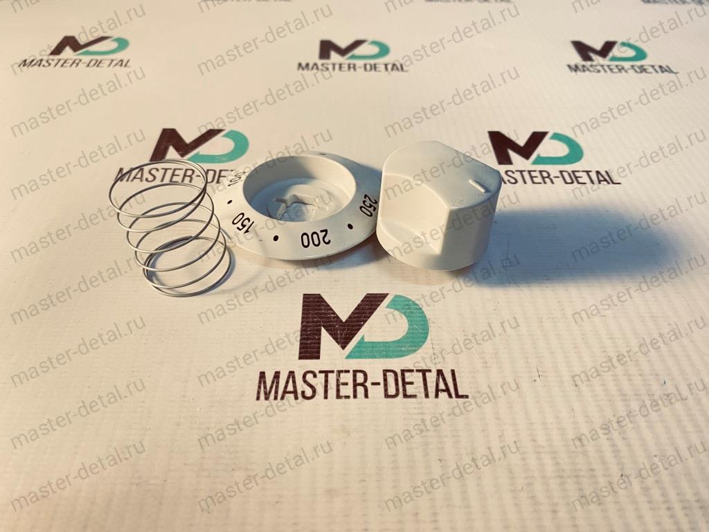 Ручка БЕЛОГО ЦВЕТА управления температурой с лимбом и пружиной для газовой плиты Deluxe