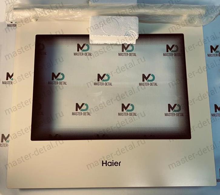 Наружное стекло дверцы духовки электрической плиты Haier белого цвета, в комплекте с ручкой.