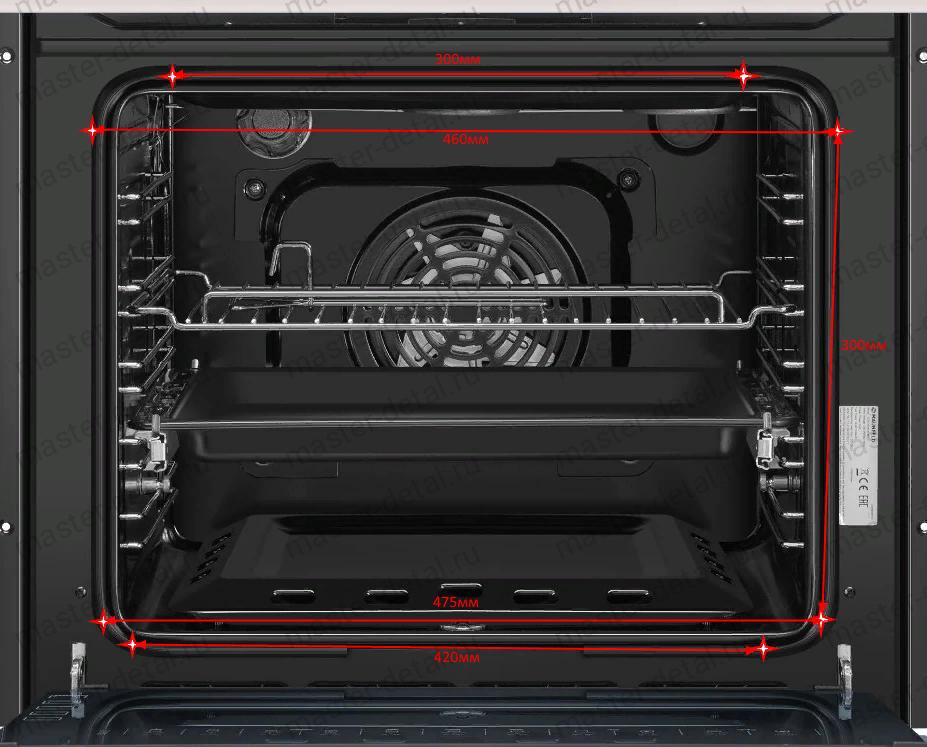 Повторяет контур духовки (см. фото точек крепежа). |