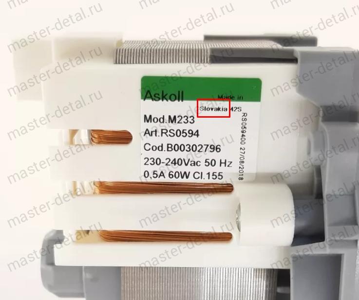 Насос циркуляционный Mod.M311 RC0268 60W Askoll для посудомоечной машины Ariston/Аристон, PUMP309