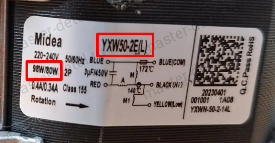 Мощность: 98W/80W Пусковой конденсатор: 3 мкФ Соединение с улиткой: 4 защёлки Подключение - 3 клеммы (6,3 мм в разъеме) + 1 клемма (6,3 мм заземление). Надпись на корпусе: Welling YXW50-2E 220-240V 50/60Hz 98W/80W 2P 0.4A/0.34A Class 155 Аналоги: 49037518, 673005202006, 674001100085, 49037458, 17476000007482, 17476000001423, 17476000001421, 4055341590, 1041288, 4055341566, 17476000001472, Midea (17476000008342, 17476000008302, 17476000001561, 11002012006532, 17476000009042, 17476000A03573, 17476000A03575, 17476000A04315), Gorenje (556161, 512766, 679169), Teka (81785294), Candy (49037492, 49037229), Hansa (1034328), Whirlpool (421309270431) |