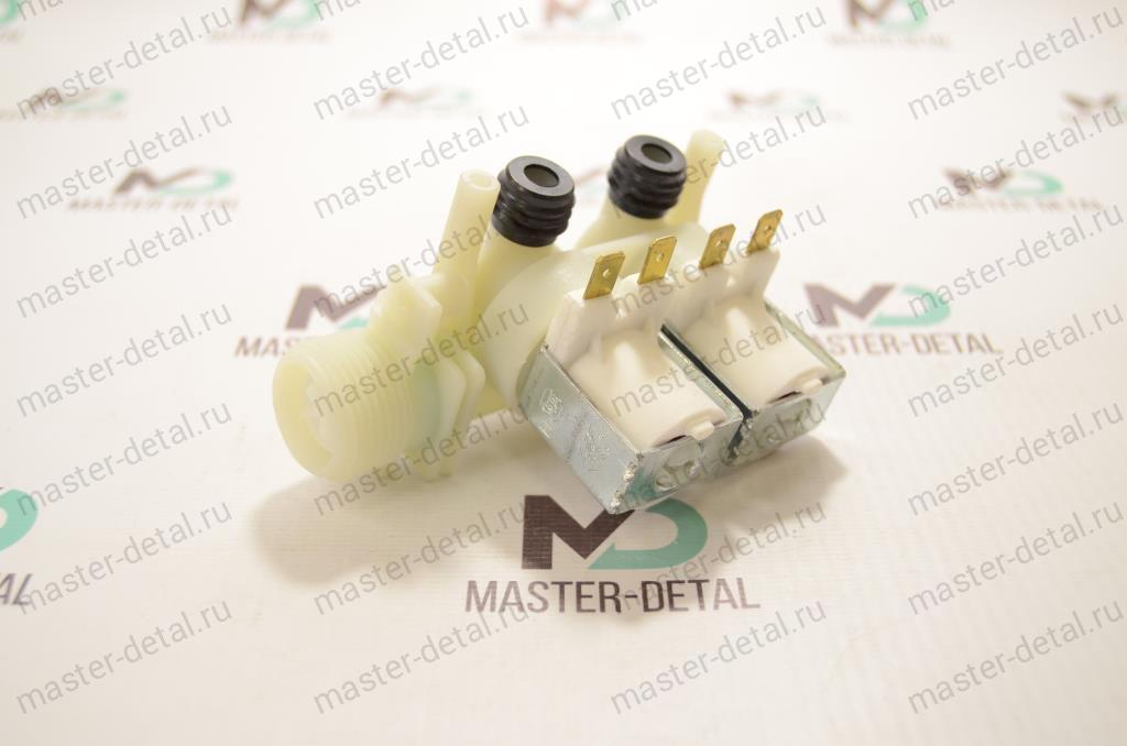 Клапан заливной 14115P двухпроходной угловой в бункер стиральной машины Indesit, Ariston, Atlant, Hotpoint, Haier.