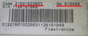 | Надпись - Маркировка | SW: 010409 / Code: 21501022903 |