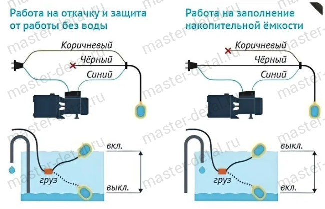 Надёжная защита насоса от сухого хода: автоматическое отключение при критически низком уровне жидкости предотвращает перегрев и поломку оборудования.