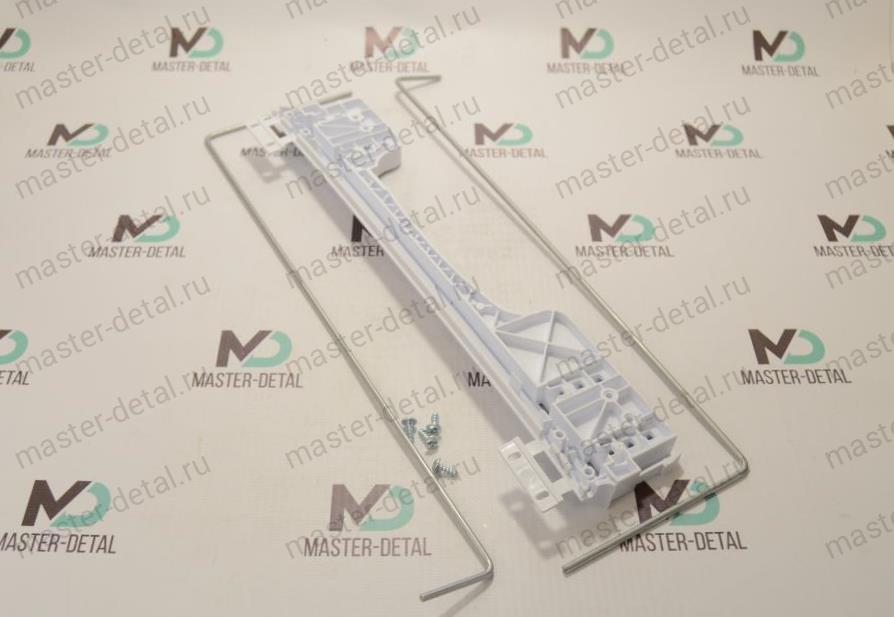 Параметры и основные размеры: Ширина максимальная: 360 мм Ширина пластиковой части с защелками: 295 мм Ширина пластиковой части без защелок: 275 мм Толщина пластикового корпуса в месте крепления: 13 мм Диаметр металлического пружинного прутка: 3,1 мм Длинна металлического пружинного прутка с линией изгиба: 95 мм Диаметр крепежных углублений: 3 мм расстояние между углублениями разное: 14 мм и 12,5 мм В комплекте: пластиковый корпус и две металлические пружинные прутка - траверсы, фиксирующиеся винтами к корпусу. |