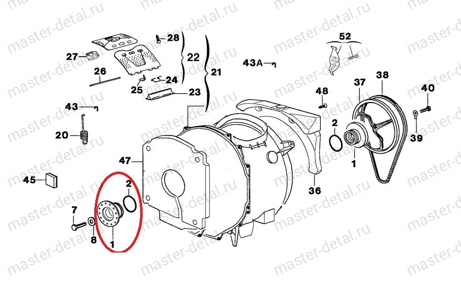 Подшипник 6203 + сальник V-RING VA22 Резьба опоры по часовой (сторона ОБРАТНАЯ (противоположная) от шкива). Подшипник: 6203 2Z (двухсторонний закрытый ). Размер подшипника 17x40x12 мм Cальник: V-RING 22 Устанавливается: в модели машин с верхней (вертикальной) загрузкой как опора барабана в пластиковом баке. Резьба: правосторонняя (закручивается ПО часовой стрелке) Место установки: со стороны обратной от шкива (колеса вращения). Комплектность: опора с впрессованным подшипником и сальником, смазка сальника, кольцо уплотнительное. Примечание: чаще всего меняется вместе с опорой со стороны шкива. Оригинальные код артикул по каталогу: 407 13 74-09/6, 405 50 70-75/1 Оригинальное название; WM BALLBEARING, PR-GF50 G1 1460125 |