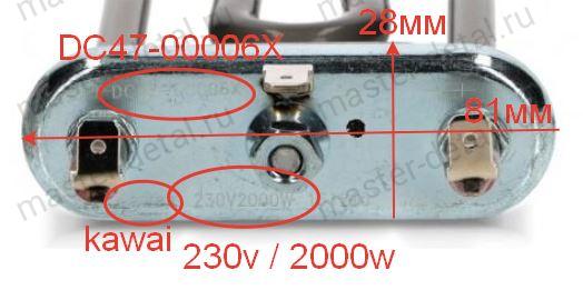 Тэн нагревательный DC47-00006X 2000W Кawai для стиральной машины Indesit/Индезит, TEN856